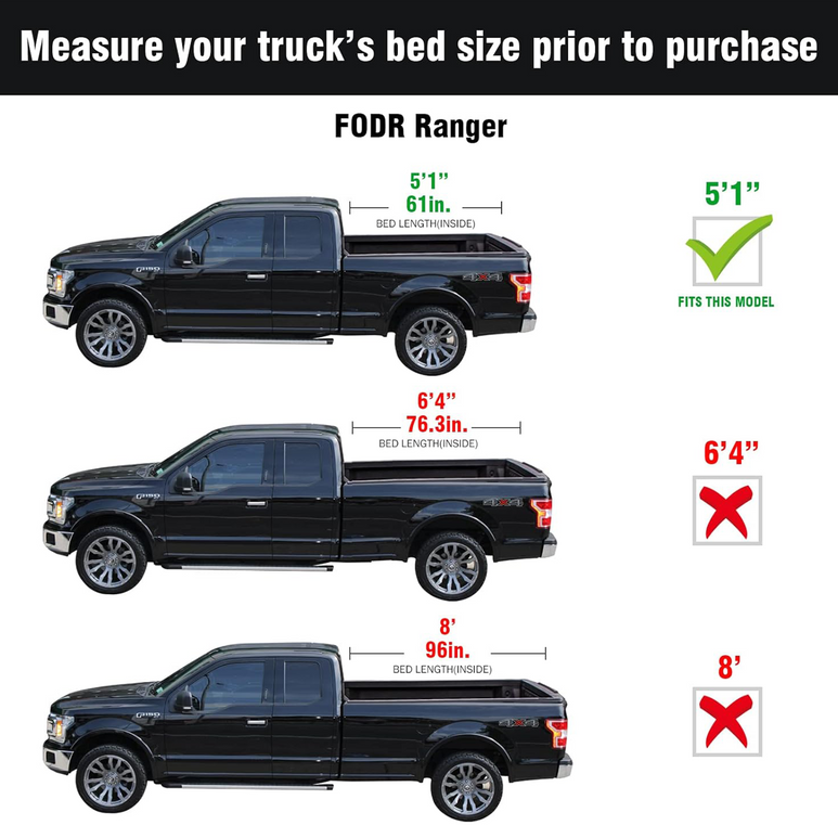 Ford Ranger (2019-2025) - Tutel Low Profile Hard Shell Flip-Up Truck Bed Tonneau Cover - 5'1" Bed (61")